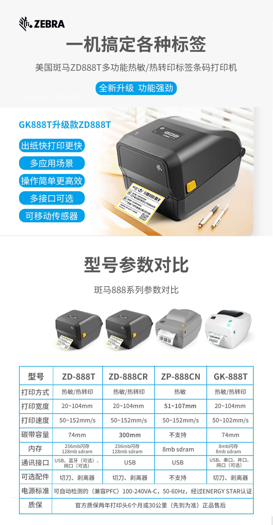 Zebra ZD888打印機(jī)采用小巧、節(jié)省空間的設(shè)計(jì)。