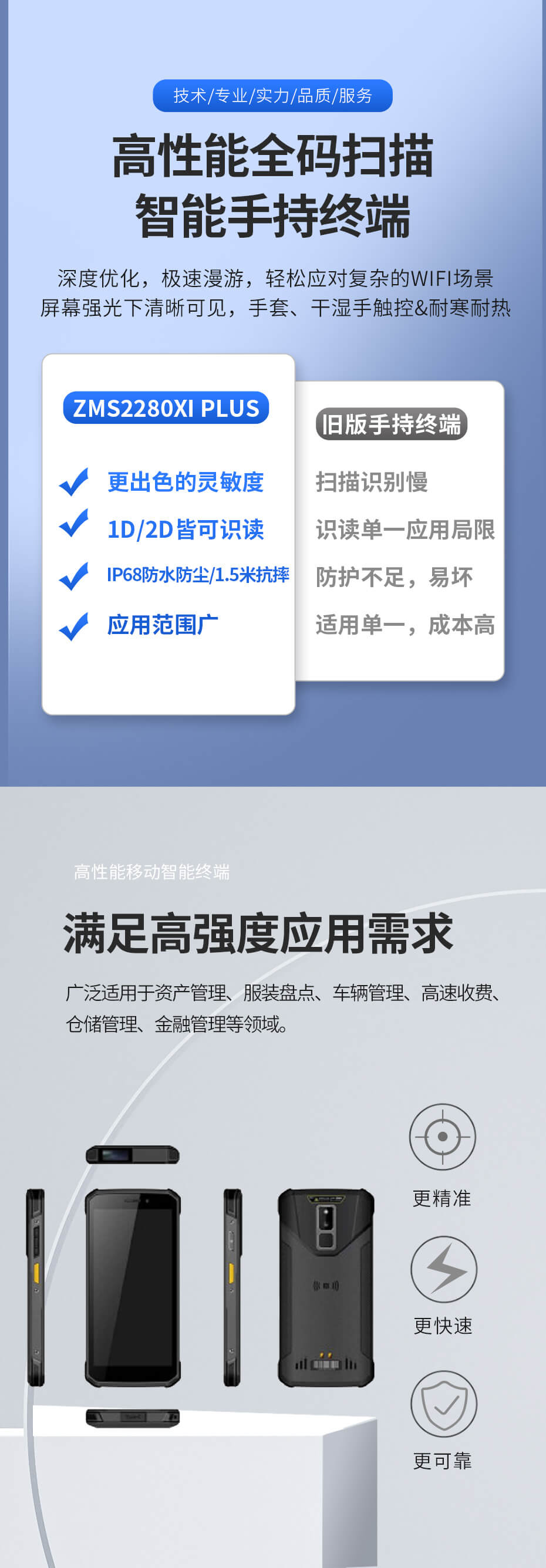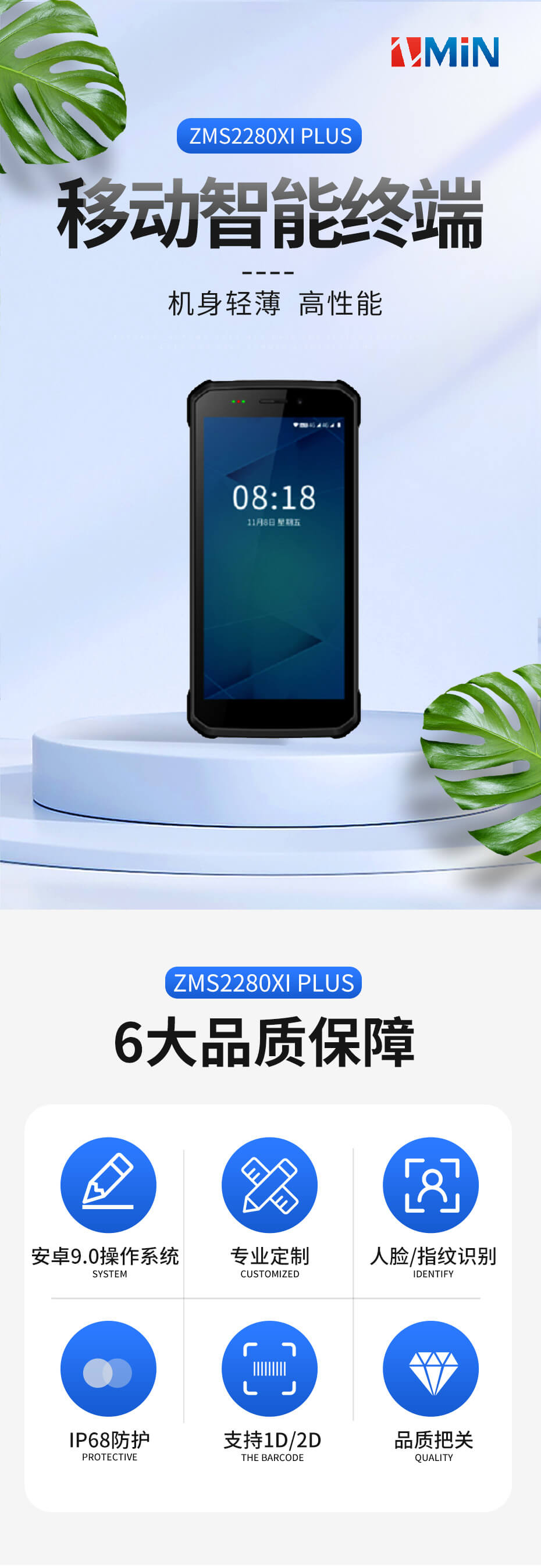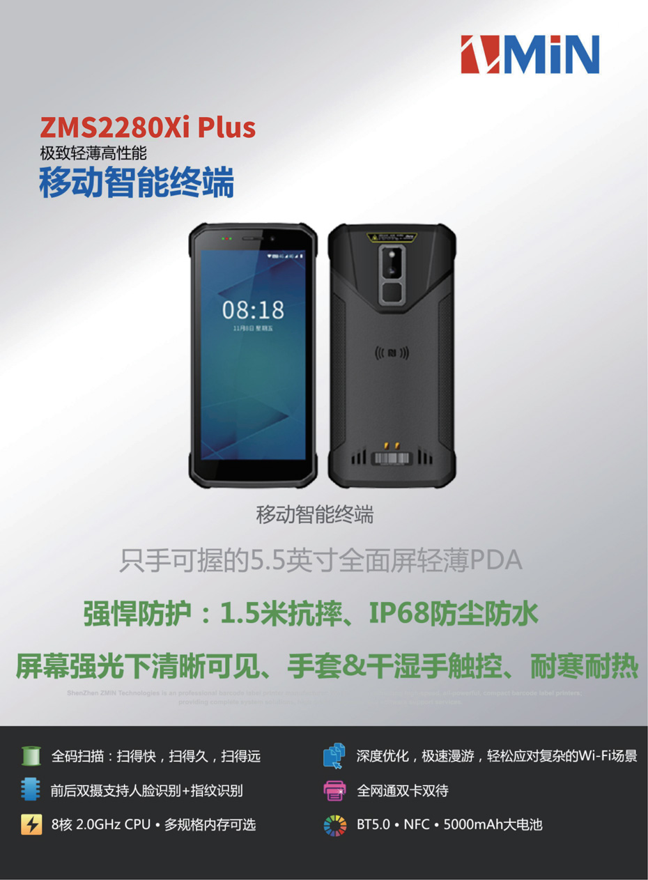 產品簡介: 致明興ZMS2280Xi plus移動智能終端,掃描快,識讀距離遠,防水防塵耐用。