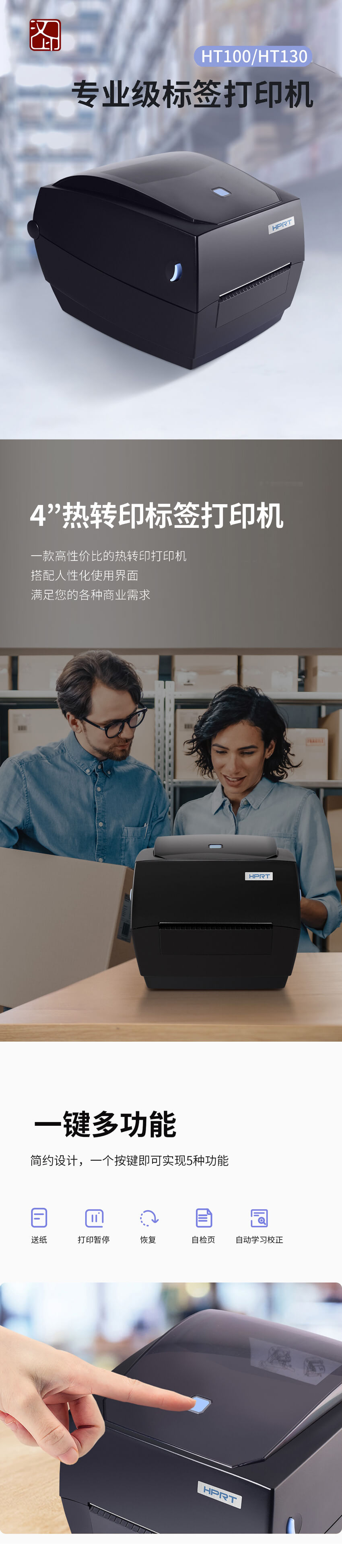 產品簡介: 條碼打印機 HT100/HT130,高性價比,界面人性化,滿足您的多種商業需求。
