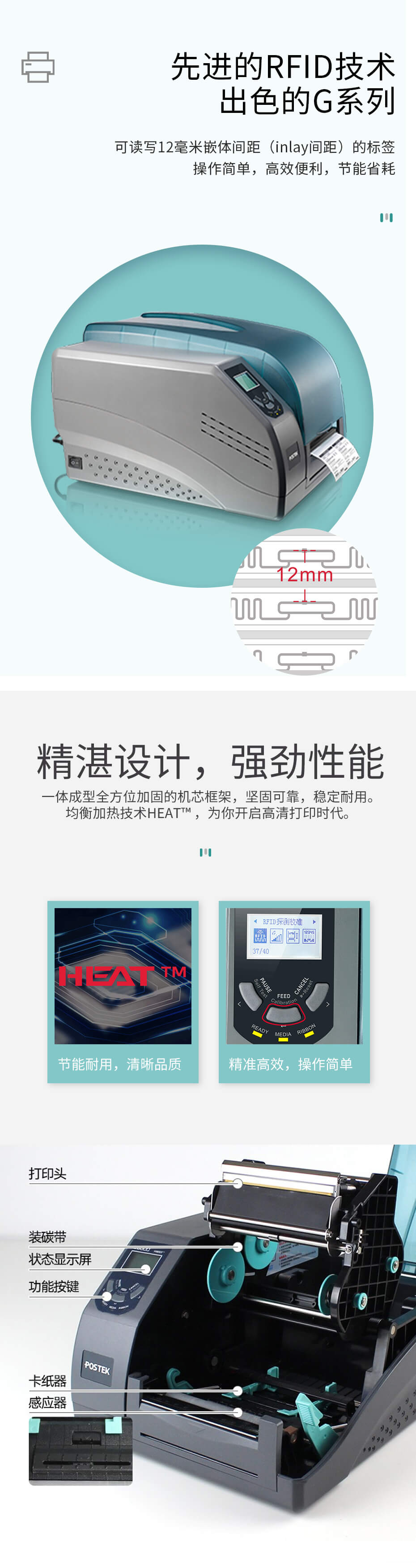 得益于HEAT?技術對加熱過程的精細控制,現在POSTEK打印機綜合加熱效率提升至30%以上,降低能耗,綠色環保,同時因高熱狀態的時間下降,打印頭壽命得以顯著提升。